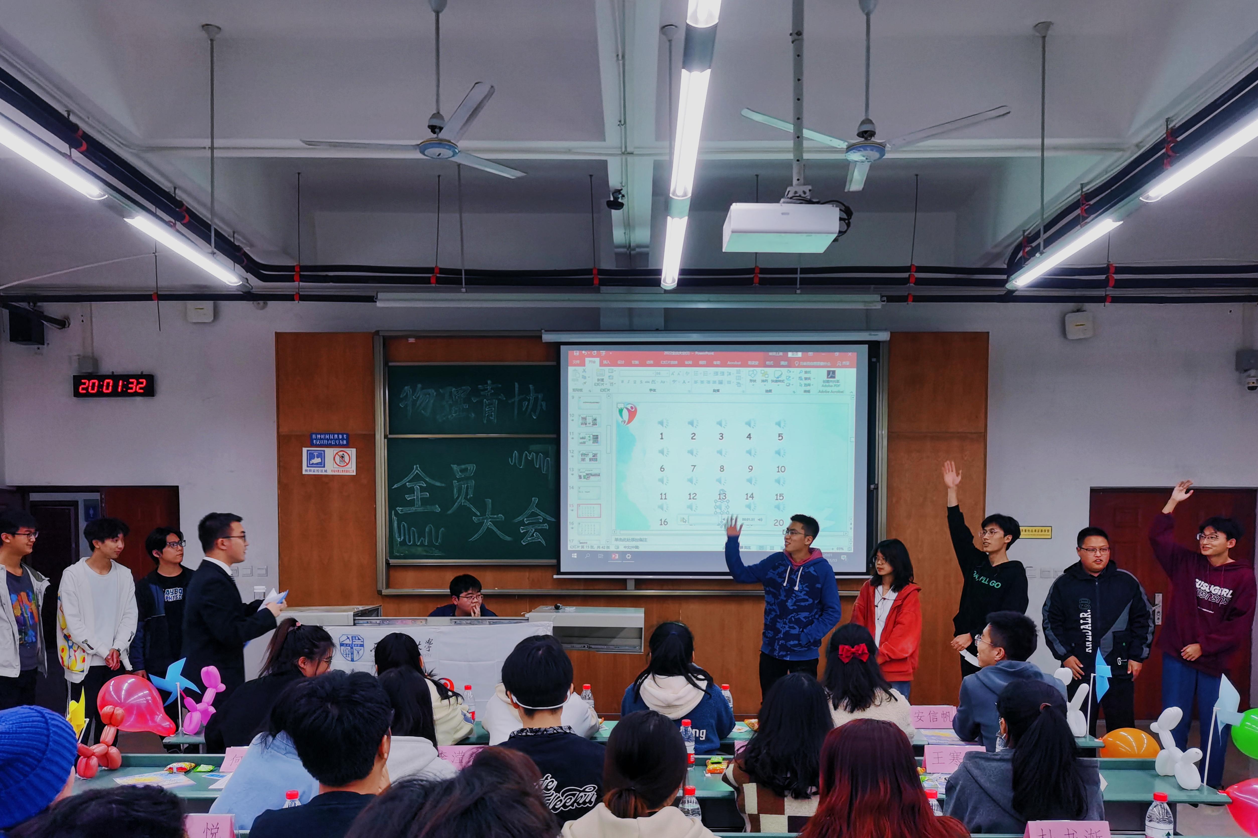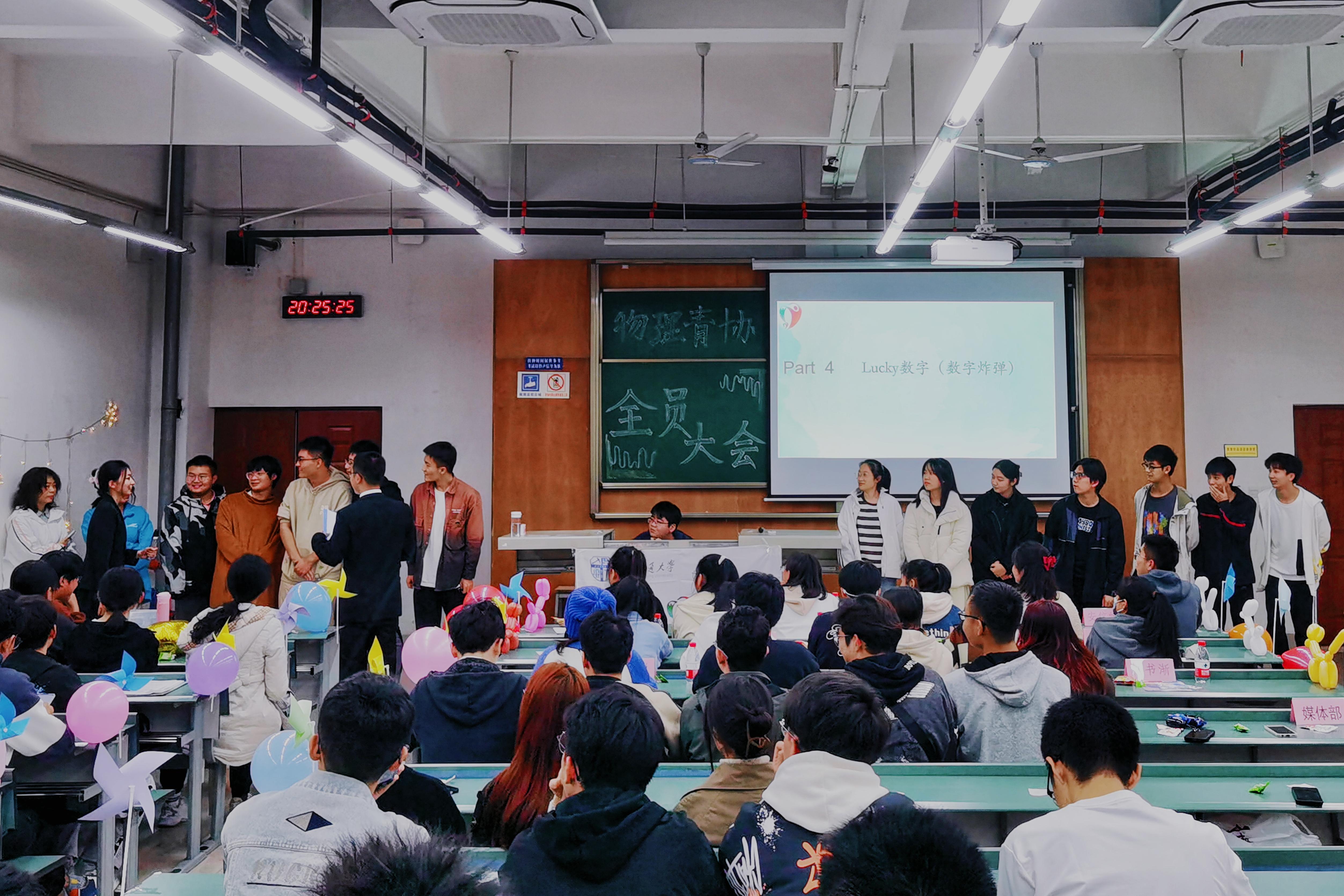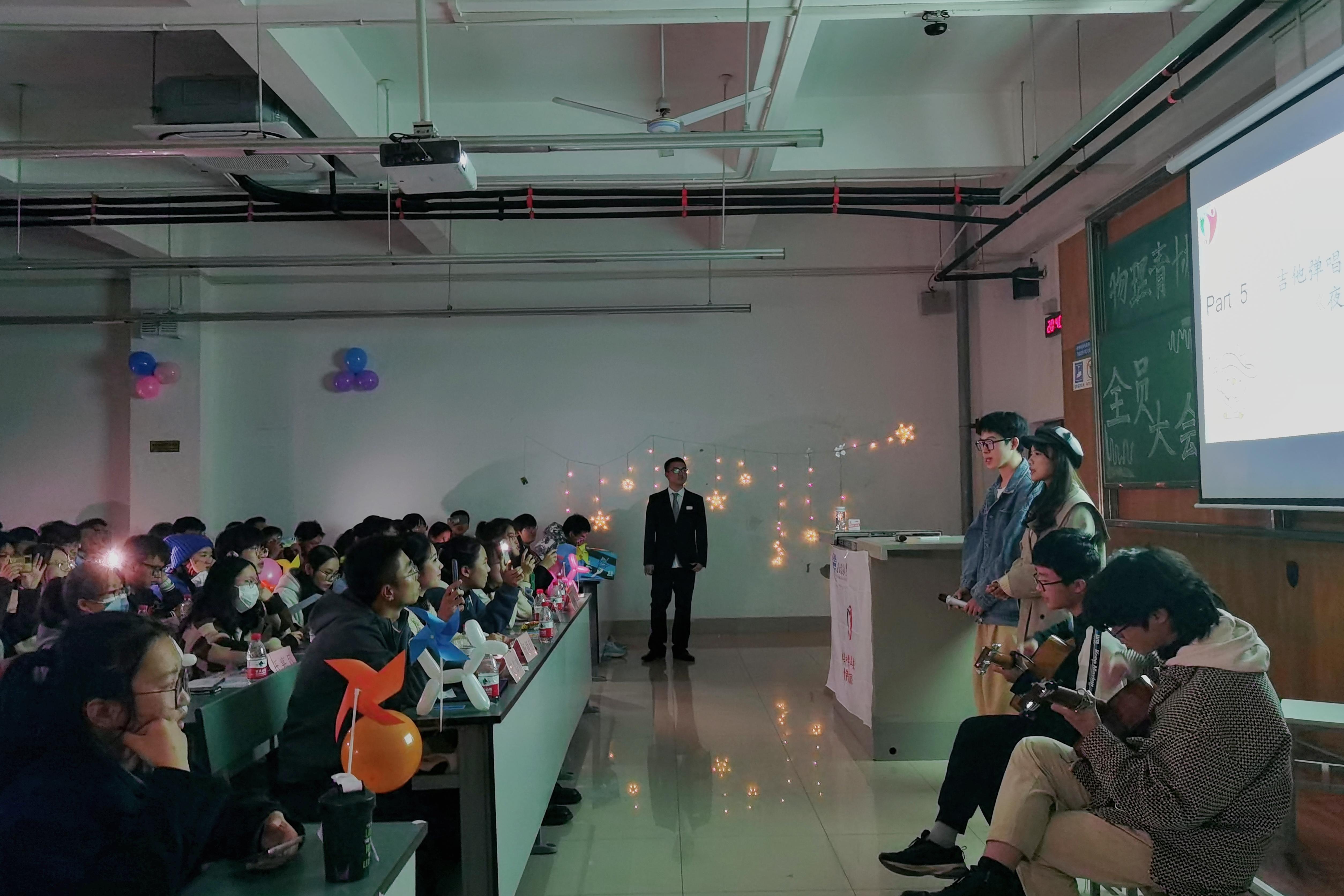 宣讲环节结束后是大会的娱乐活动——节目表演与游戏竞技。青协成员们带来节目:诗朗诵《只因你太美》,歌曲独唱《追光者》以及吉他弹唱《夜空中最闪亮的星》;大会同时开设“听歌识曲”“数字炸弹”“正话倒说”游戏环节,节目表演与游戏竞技交替进行,并在其间穿插惊喜抽奖活动。成员们都积极地参与到活动当中,现场氛围几度推上高潮,大家齐聚一堂,欢声不断。
