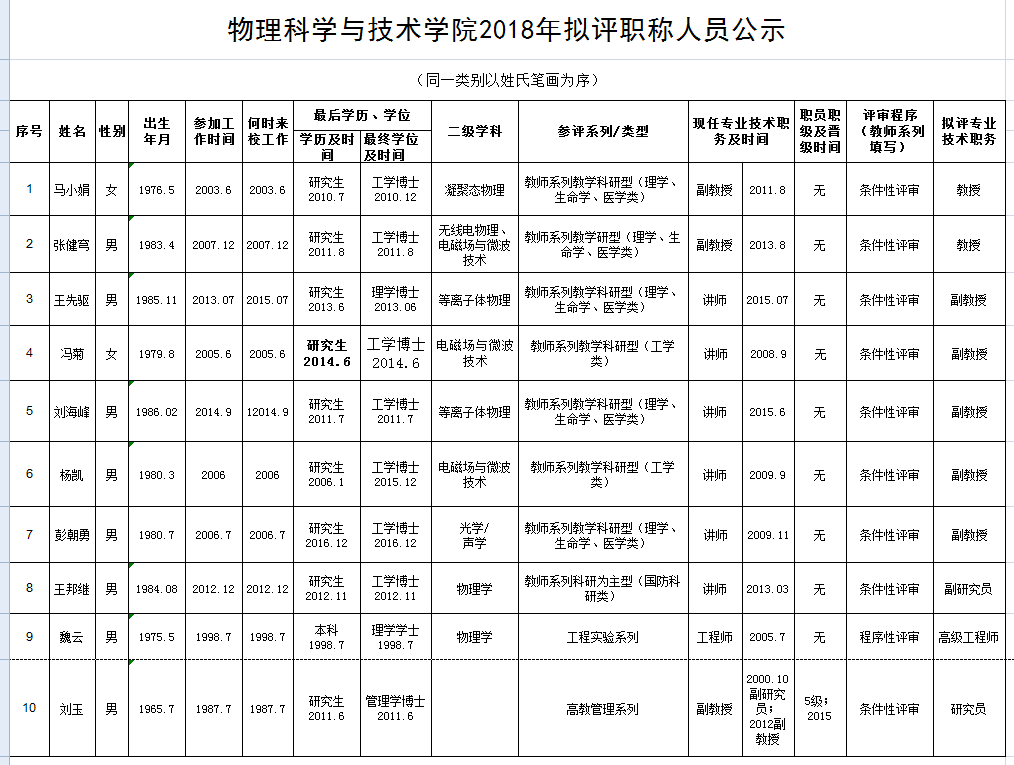 根据今年学校职称评审工作的安排,申请人信息需在学院公示不少于5个工作日。现将申请人信息公示如下,纸质材料可在犀浦校区5521B办公室查阅。